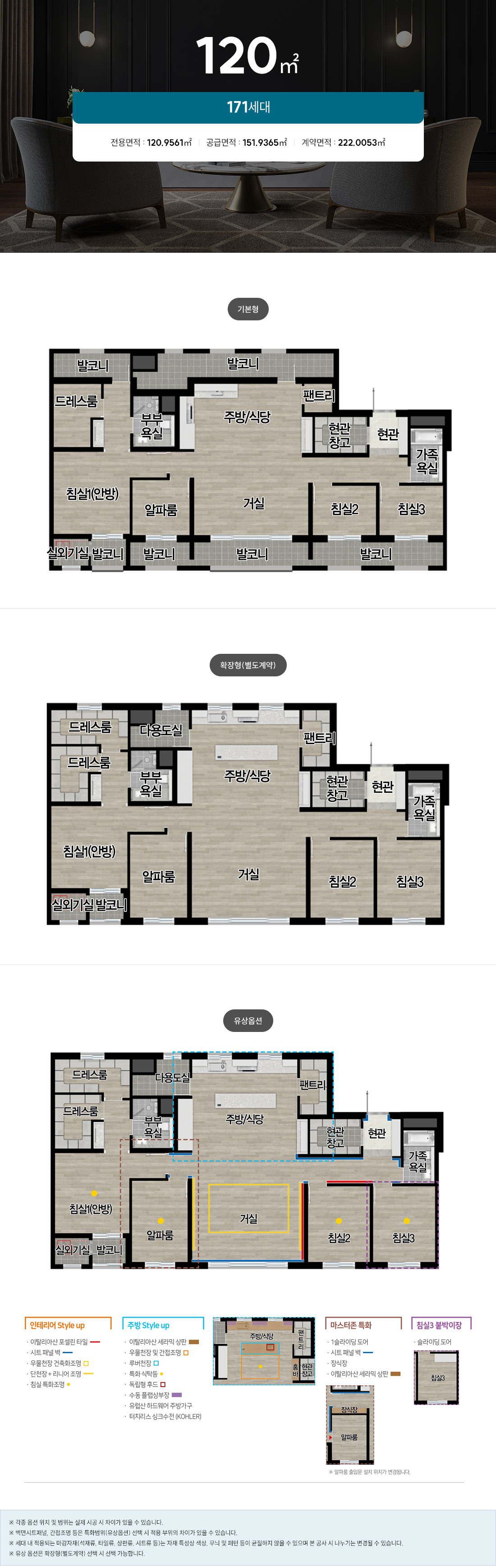 - 120㎡ A 타입: 맞벌이 부부와 중형 가족에 적합한 넓은 주방 및 수납