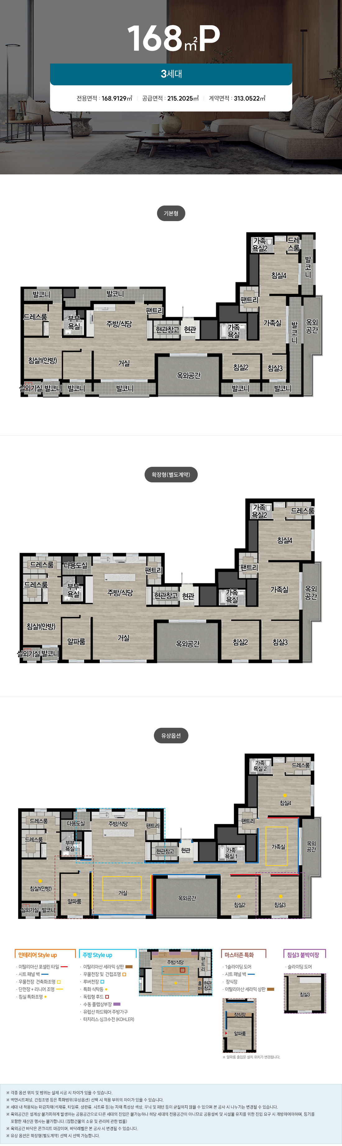 - 168㎡ P 타입: 펜트하우스 전용, 스카이 테라스 포함 프리미엄 설계